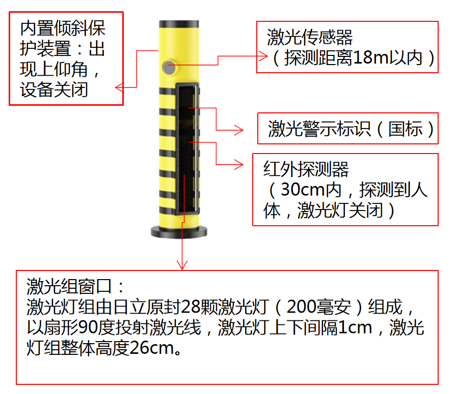 先進(jìn)性:系統(tǒng)已獲得國(guó)家發(fā)明專利,通過公安部交通安全產(chǎn)品檢測(cè)中心的檢測(cè)認(rèn)證;采用世界先進(jìn)納米級(jí)半導(dǎo)體激光組,能耗低、安全性高,配合定制光學(xué)透鏡,光線醒目且無(wú)危害。