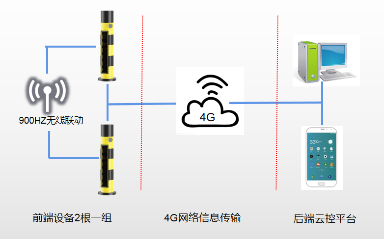 方案整體包括前端設(shè)備(智能斑馬線預(yù)警裝置)、4G物聯(lián)網(wǎng)、云控平臺(tái)
